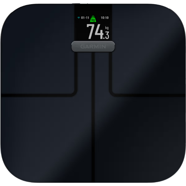 Garmin Index S2 är en stabil och funktionell smartvåg som erbjuder noggranna mätningar av vikt, BMI, kroppsfett, muskel- och benmassa.
